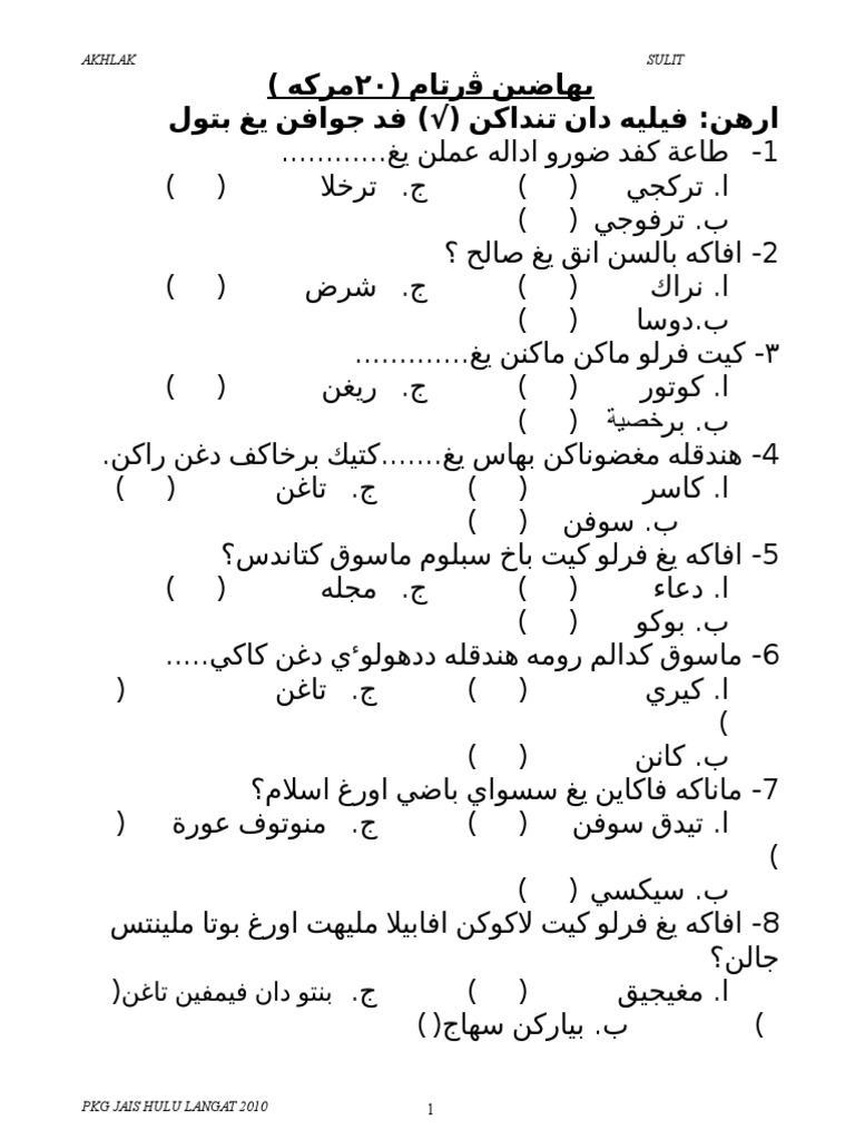 Contoh Soalan Akhlak Tahun 1 Sekolah Agama Contoh Ski Otosection